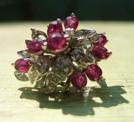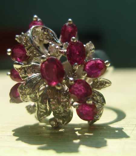 Cincin, 10 batu Ruby Burma Pigeon Blood @ 0,5crt dan +/- 13 Berlian